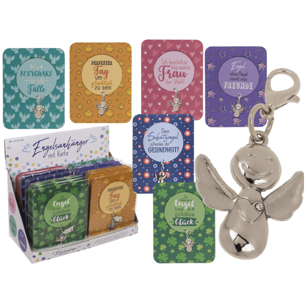 Engelsanhänger, 2,3 x 2,5 x 0,7 cm, 6-fach sortiert, auf Karte, 24 Stück im Display - nur für DE