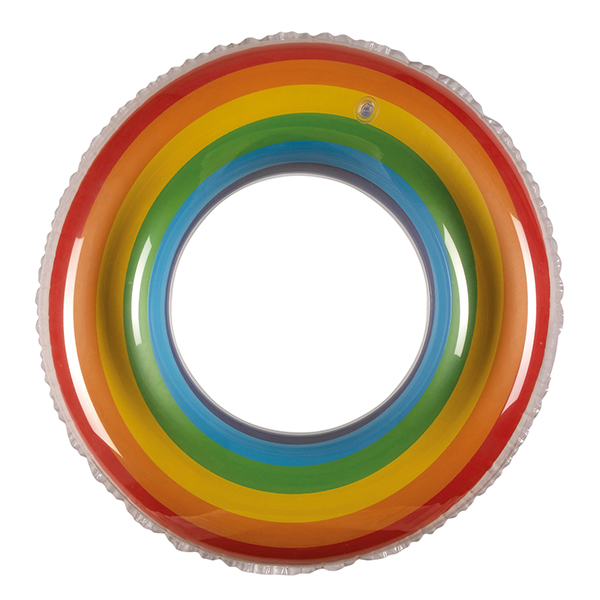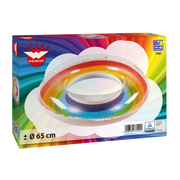 Schwimmring Rainbow, aufgeblasen ca. 65cm, unaufgeblasen ca. 70cm, Oberseite transparent, Unterseite innen mit Regenbogenfarben.
