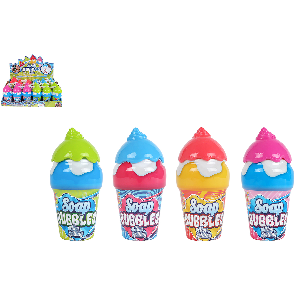 Seifenblasen-Eiscreme, 40 ml, auslaufsicher, 12cm, 4-fach assortiert im Display.