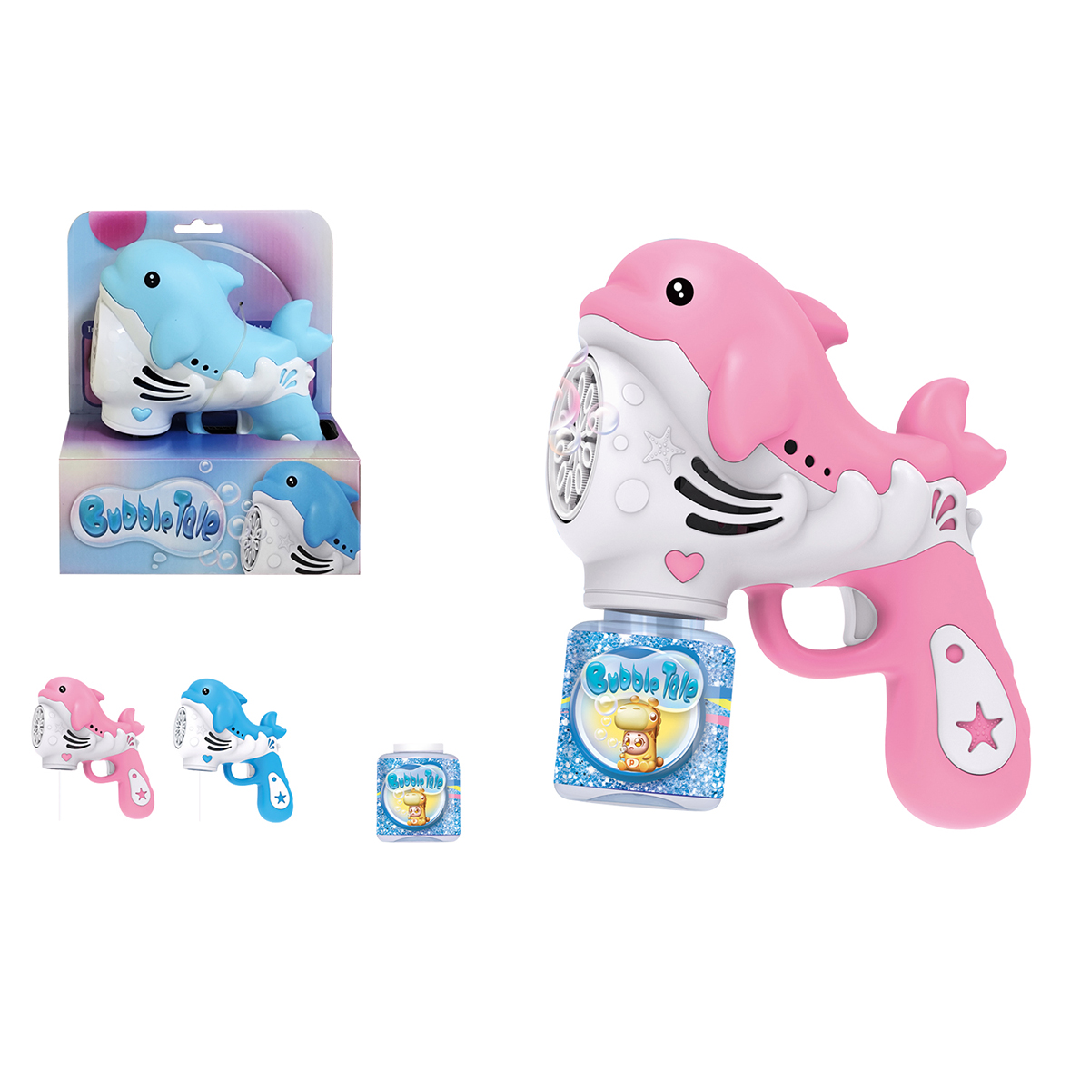 Seifenblasenpistole mit Licht Delfin, 2-fach assortiert, exkl. 4x AA Batterien.