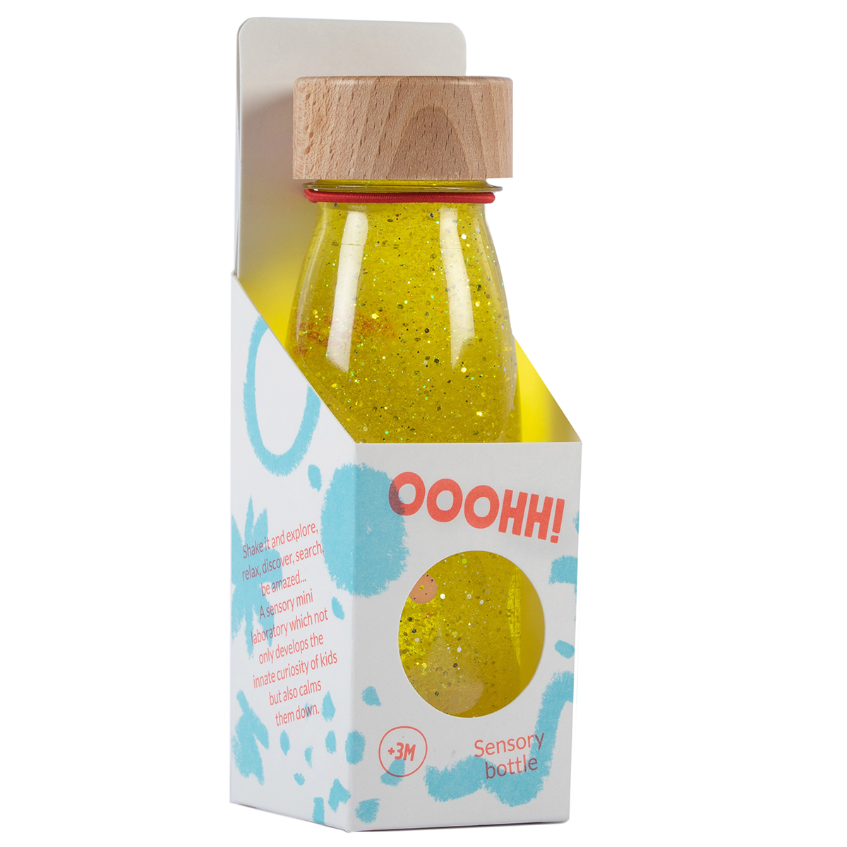 Float Flaschen der Regenbogen zum Greifen nah. Mit diesen Flaschen, inspiriert von den Farben der Natur, entdecken Kinder Farben, staunen ueber das Licht und foerdern ihre Konzentration, waehrend sie ihren Moment der Ruhe finden. Verwende sie auf Lichttischen fuer einen magischen Effekt oder lass das Kind das Glitzerfliessen, die kleinen Schwimmer und Pompons beim Entspannen betrachten.