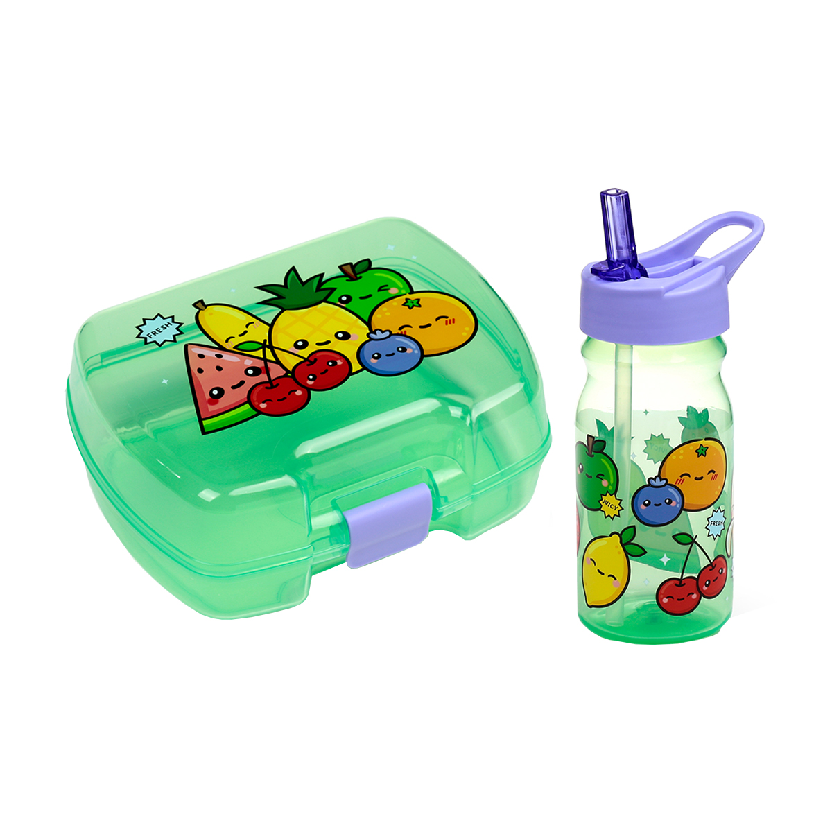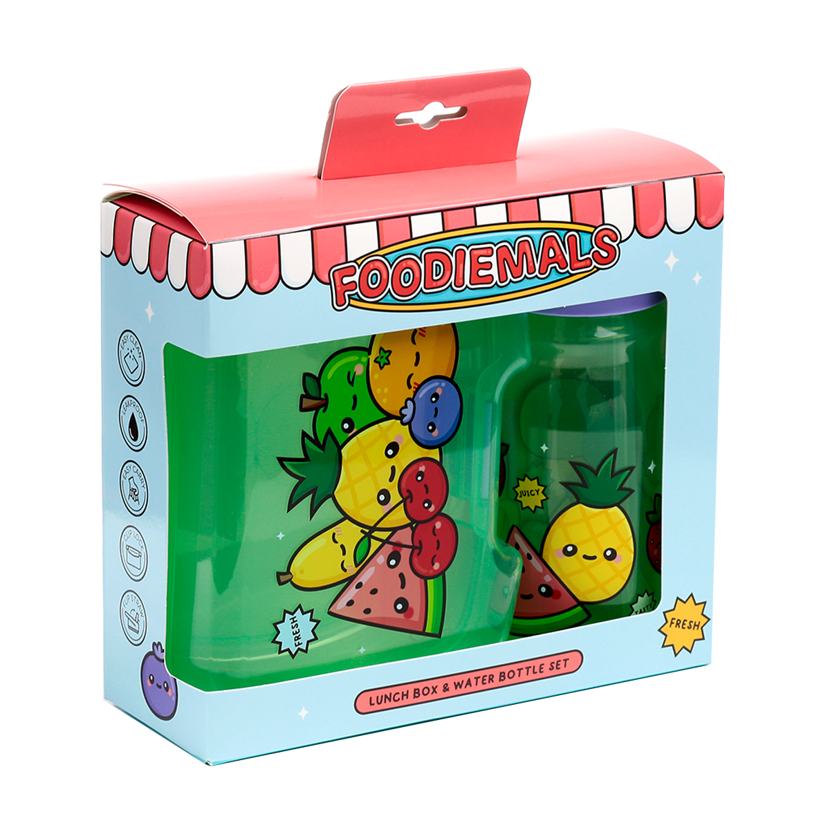 Foodiemals Set Trinkflasche und Lunchbox, Masse Lunchbox: 16.5x13.5x7 cm, Trinkflasche: 5 dl