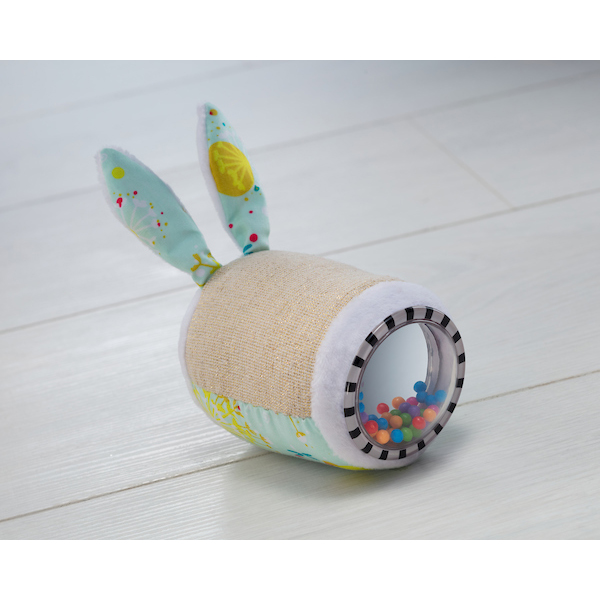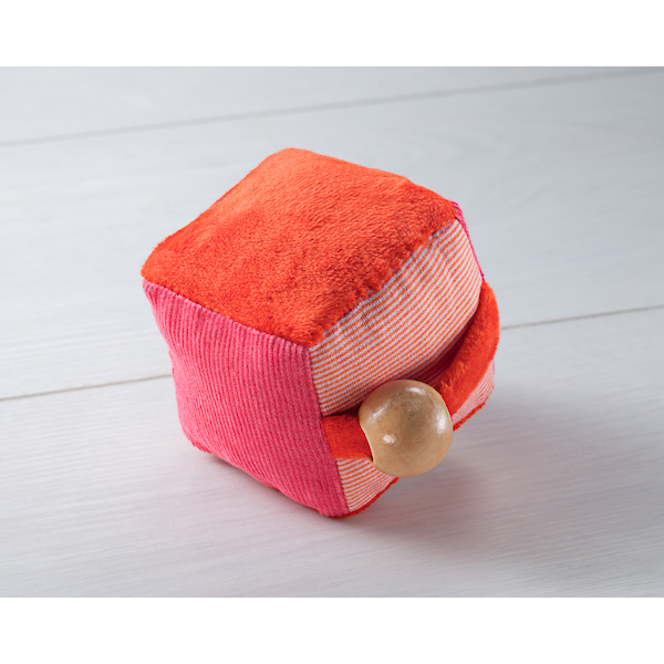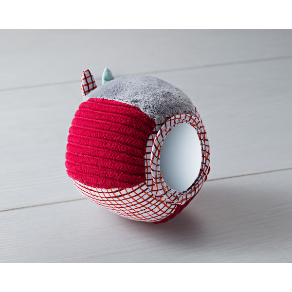 Vier süsse, weiche Spielsachen in verschiedenen Formen, Farben und Stoffen, die zum Entdeckungsspiel einladen und für Überraschung sorgen.