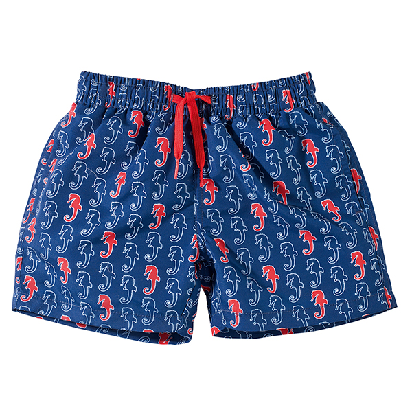 Badeshorts für Jungen und Mädchen. Schnelltrocknende Mikrofaser, 100% Polyester, elastischer Bund, durchgehendes Bindeband. Innenslip, 100% Polyester und 3 Taschen.