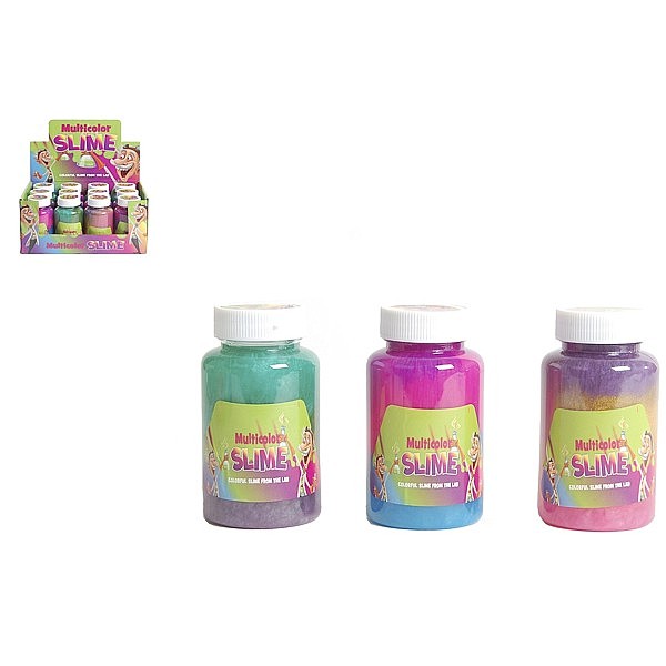 Slime multicolor 250g Display, verschiedene Farben assortiert, in einem Behälter mit Deckel.