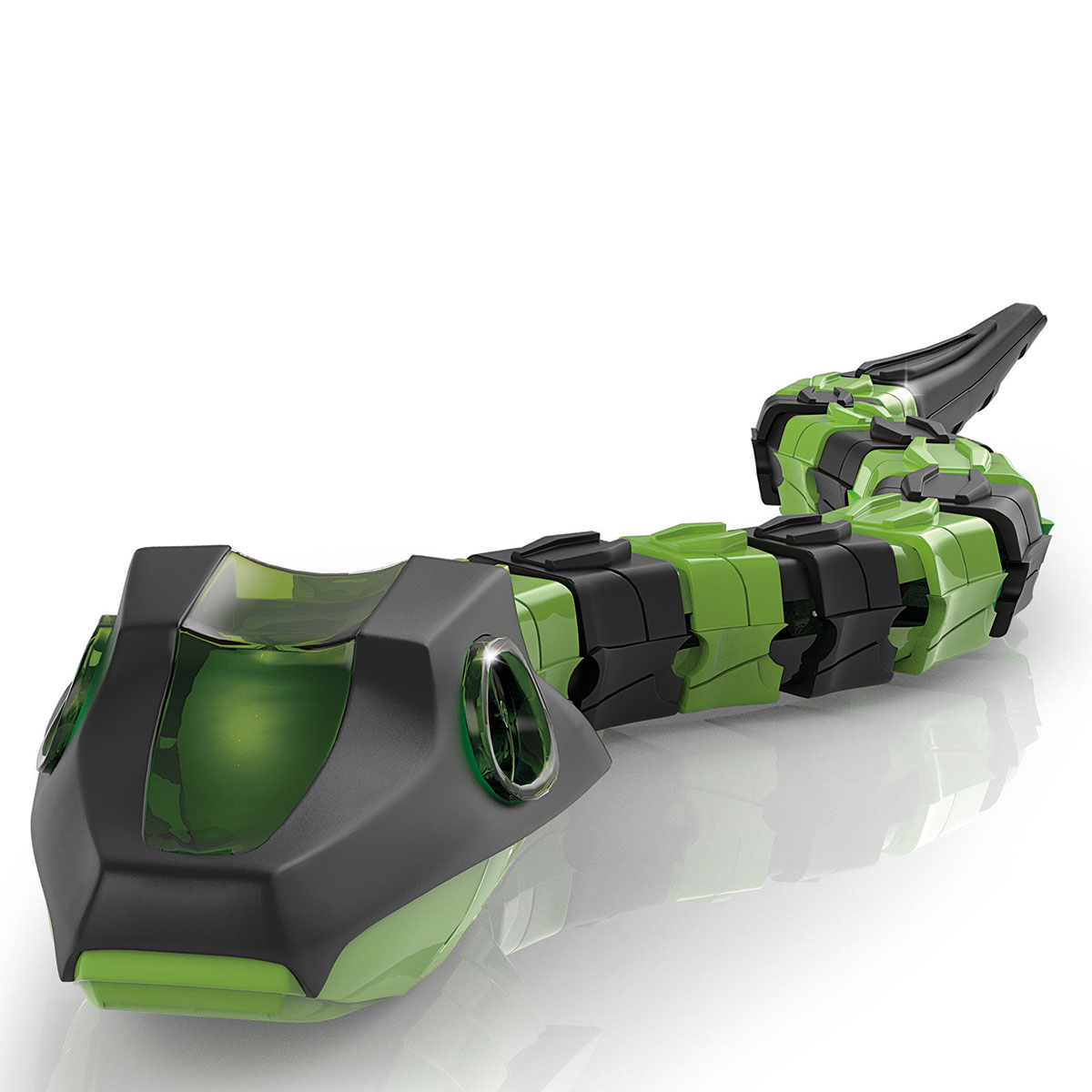 SlitherBot. Eine Schlange zum Zusammenbauen, die zum Leben erwacht und beginnt, sich durch den Raum zu schlängeln, als ob sie echt wäre! Ein Roboter, der sich durch den Raum bewegt, für ein unübertroffenes Spielerlebnis. Eine 40 cm lange Schlange, mit der die Interaktion noch mehr Spass macht. Nachdem die 12 oberen Komponenten an den unteren Teilen befestigt wurden, schaltet man einfach den Roboter ein, um zu sehen, wie er sich bewegt. Nun kann das Abenteuer beginnen. Der Motor verfügt über ein spezielles Getriebe, das die Pleuelstange einmal nach rechts und einmal nach links bewegt. Auf diese Weise bewegt sich das Tier durch geschmeidiges und realistisches Schlängeln vorwärts. Nach dem Einschalten beginnt der Roboter, sich um das Kind herum zu schlängeln und gelangt in kleine Spalten oder Ecken, wie eine echte Schlange. Man kann nicht widerstehen, seinen Freunden schreckliche Streiche zu spielen! Der modulare Aufbau des SlitherBot bildet einige extrem realistische Windungen nach, genau wie die einer echten Schlange.