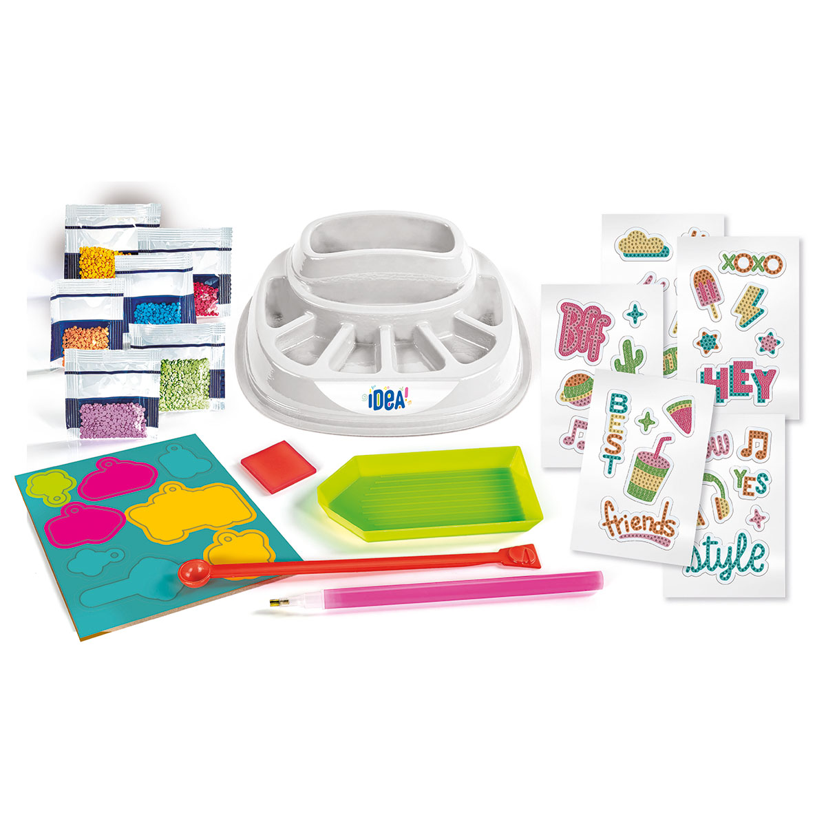 Sparkly Creations - Game Icons. Ein neues Spiel, das auf der Aktivität von Diamanten basiert, für brillante und farbenfrohe Kreationen! Dank des Farbführers und des Spezialstifts können Sie die 3D-Edelsteine ganz einfach auf Aufkleber mit einem originellen und lustigen Design auftragen. In dieser Version sind die Illustrationen im Pop-Stil gehalten.