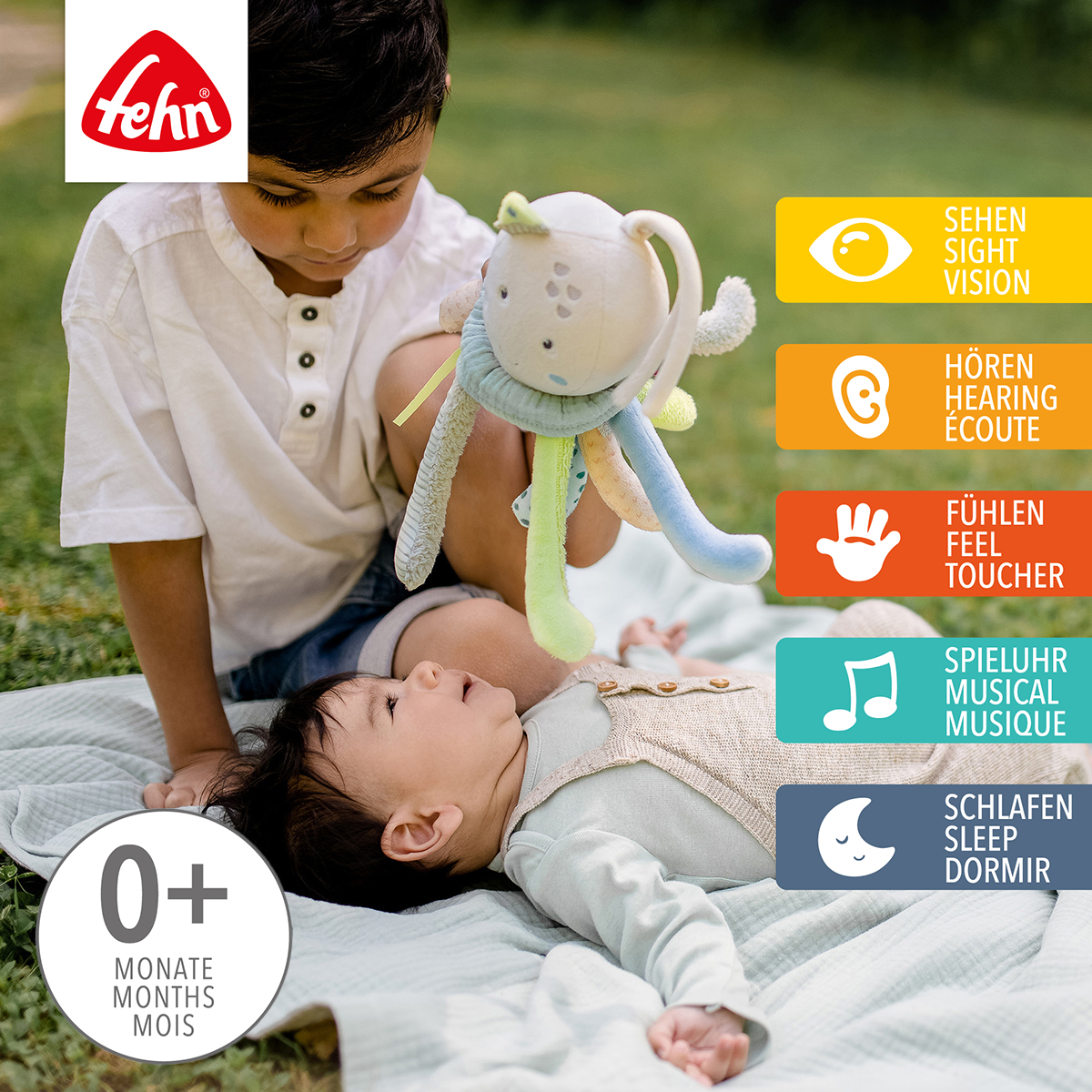 Spieluhr Oktopus - Kuscheltier & Einschlafhilfe: Aufzieh-Spieluhr mit sanfter Melodie „Brahms Wiegenlied“ beruhigt in jeder Situation – für Babys und Kleinkinder ab 0+ Monaten.