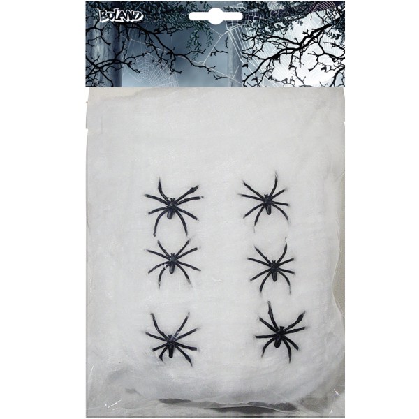 Dieses tolle Spinnennetz eigent sich als Halloweendeko. Das Netz ist elastisch und flexible und kann nach belieben angebracht werden. Mit den 6 Spinnen wirkt das Spinnennetz echt.