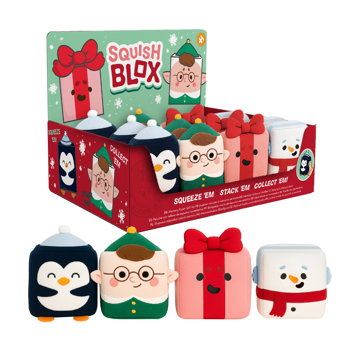 Squeezy Plüsch Blox mit lustigen Motiven, 4-fach assortiert