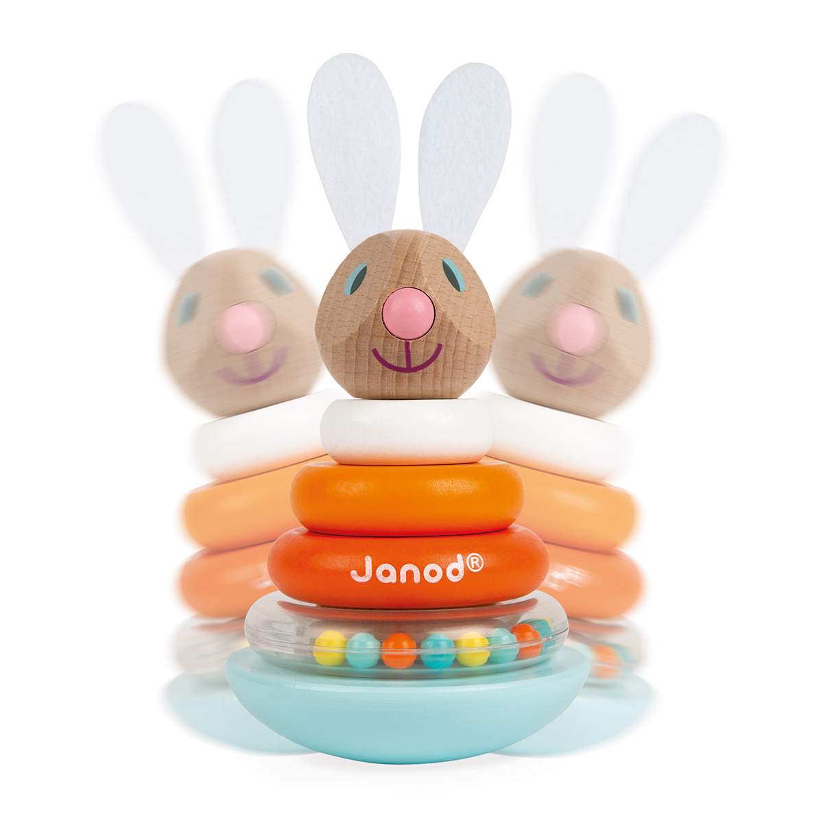 Das Steh-Auf-Männchen hat aufeinander passenede Ringe. Der unterste Ring besteht aus Plexiglas mit farbigen Perlen und macht tolle Geräusche, wenn er vom Baby geschüttelt wird.