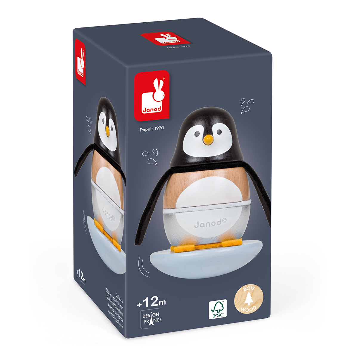 Stehauf-Männchen Zigolos 9x9x14.5cm, Holz 7tlg.. Pinguin zum Zusammensetzen und Mischen der Teile aus Holz und Wollfilz, um eine schöne Stehauffigur zu erhalten. Holzspielzeug mit Wasserfarbe bemalt, für Kinder von 12 bis 36 Monate.