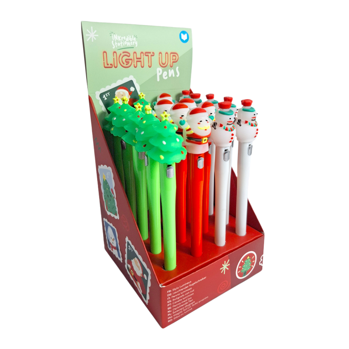 Stift mit Topper im Weihnachtsmotiv und LED, 3-fach assortiert
