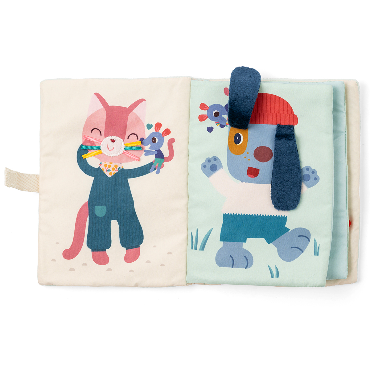 Ein weiches Buch für kleine Hände. Maus Nina geht spazieren und entdeckt die Pfoten, Schnurrhaare und Federn ihrer Freunde Überraschung am Ende: Nina verkleidet sich mit all diesen hübschen Details! Ein zartes und farbenfrohes Stoffbuch, das den Tastsinn und die Fantasie der Kleinsten anregt.