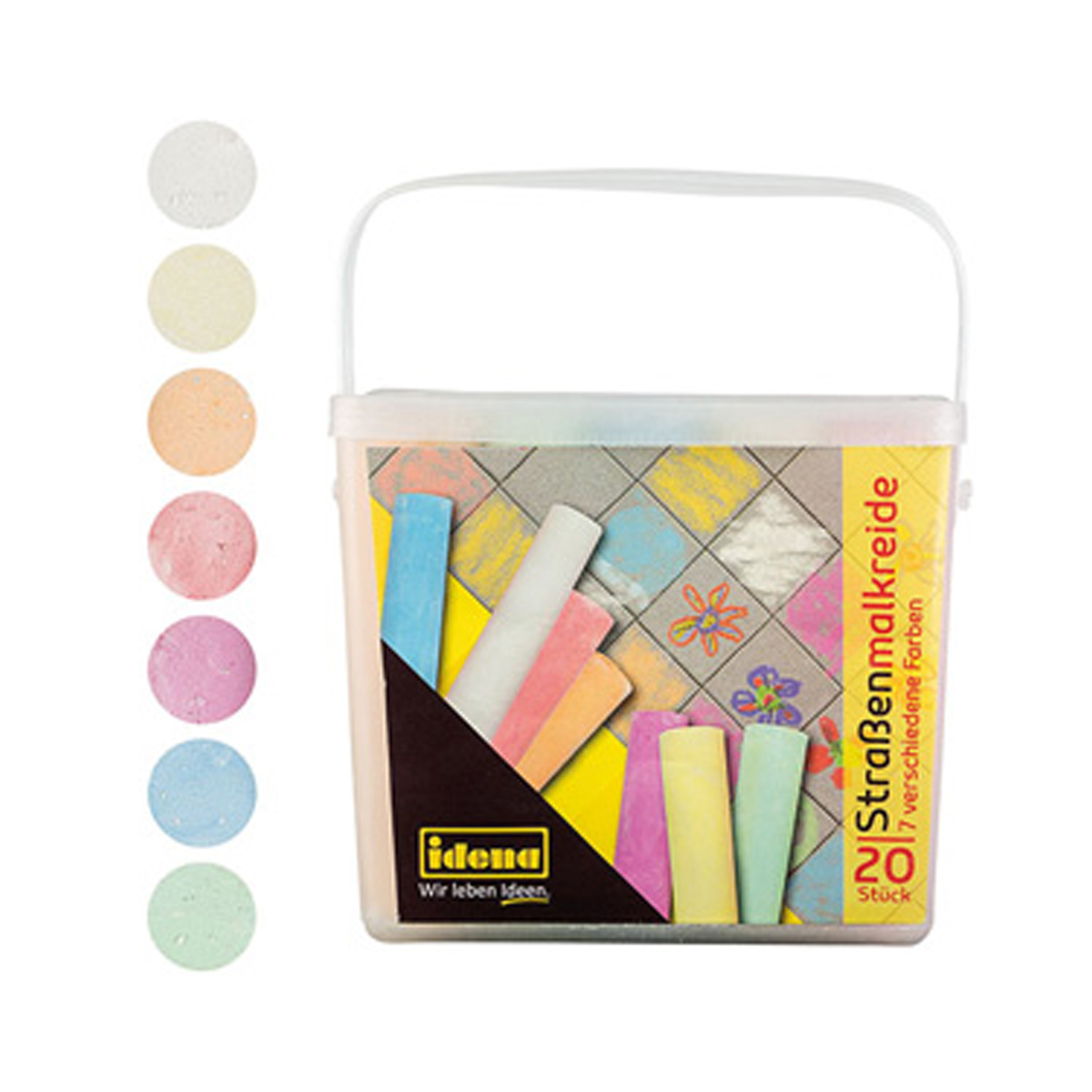20 Strassenmalkreide im praktischem Eimer. Damit entstehen wahre Meisterwerke.