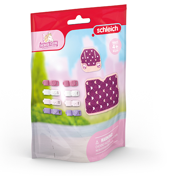 Bei so vielen bunten Haarclips fällt die Entscheidung schwer: Welcher Schmuck soll heute die kämmbare Mähne zieren? Für den Schweif sind auch noch genügend Haarclips da. Alles passt farblich perfekt zur herzigen Pferdedecke. Wer zu diesem schönen Pferd gehört ist völlig klar: natürlich die Reiterin mit der passenden Weste!