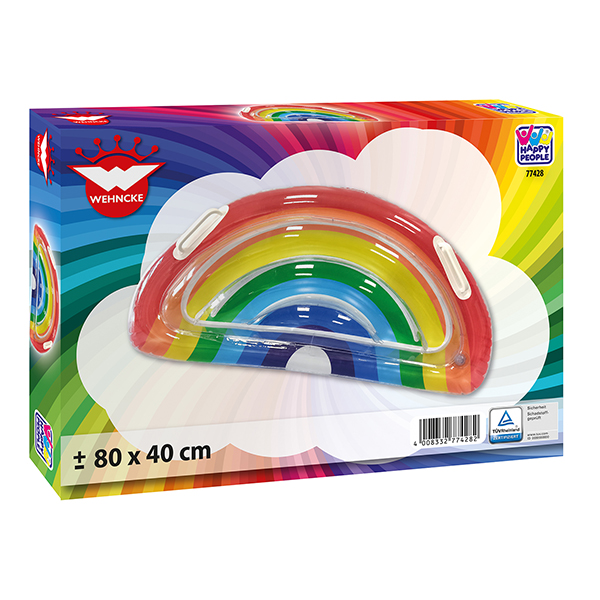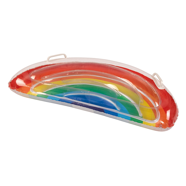 Surfer Rainbow halbrund, aufgeblasen ca. 80x40cm, Oberseite transparent, Unterseite innen mit Regenbogenfarben, 2 Haltegriffe.