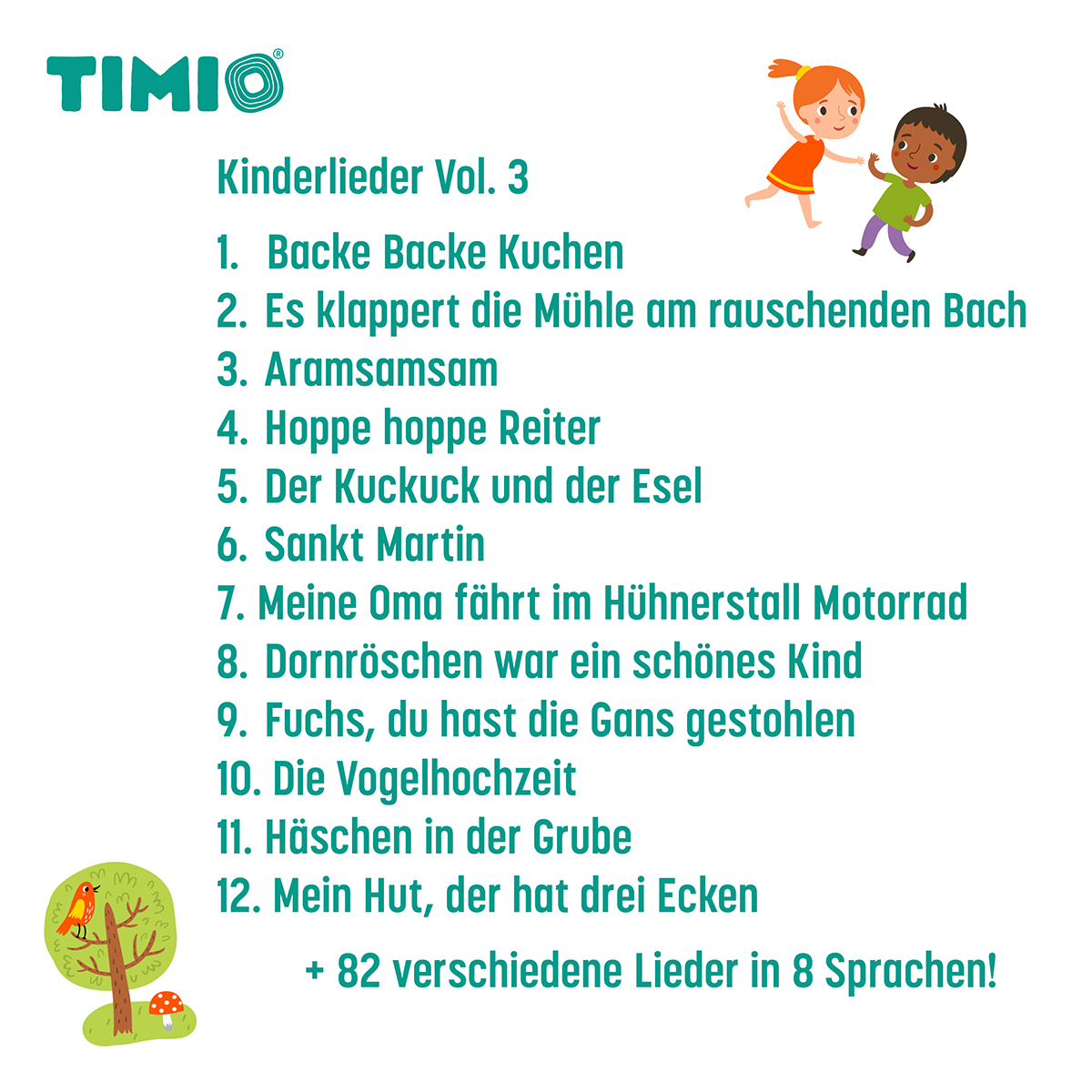 TIMIO DISCS SET 4 - für den TIMIO Audio und Musikplayer für Kinder. Das TIMIO Set 4 besteht aus 5 Magnetplatten, um eine Bibliothek ausgewählter Inhalte freizuschalten. Dieses Set beinhaltet die Discs: Kinderlieder Vol. 3, Märchen Vol. 2, Märchen Vol. 3, Dinosaurier und Insekten. Sammle alle Discs um deine Bibliothek zu vervollständigen.
