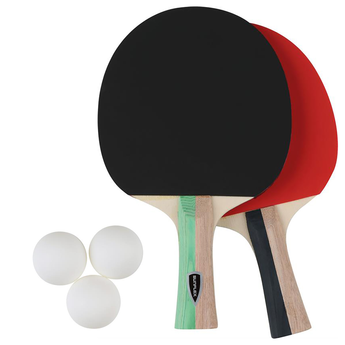 Tischtennis-Set inkl. 2 Schläger und 3 hochwertige TT-Bälle (Plastikball 40+), Tischtennisschläger Noppen innen, ohne Schwamm, 3 Qualitätsbälle, komfortabler und konkaver Griff.