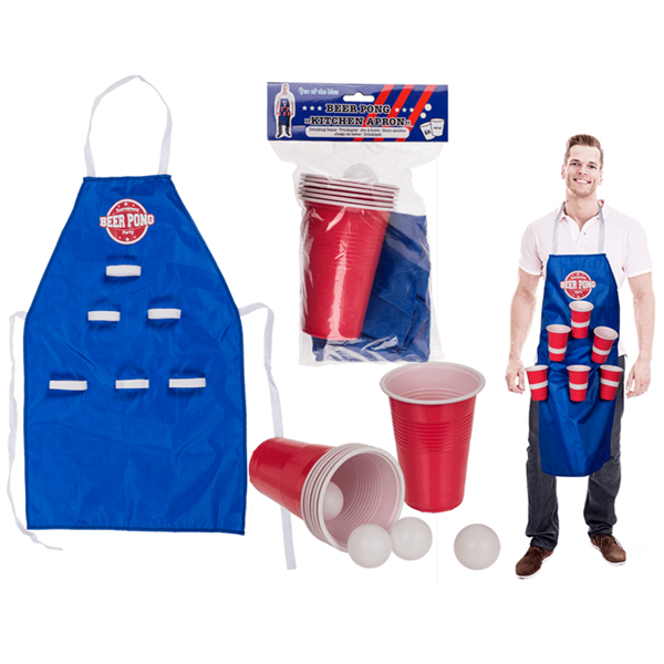 Küchenschürze, Beer Pong, ca. 80 x 50 cm, mit 4 Bällen & 6 Trinkbechern, für ca. 450 ml, im Polybeutel mit Headercard