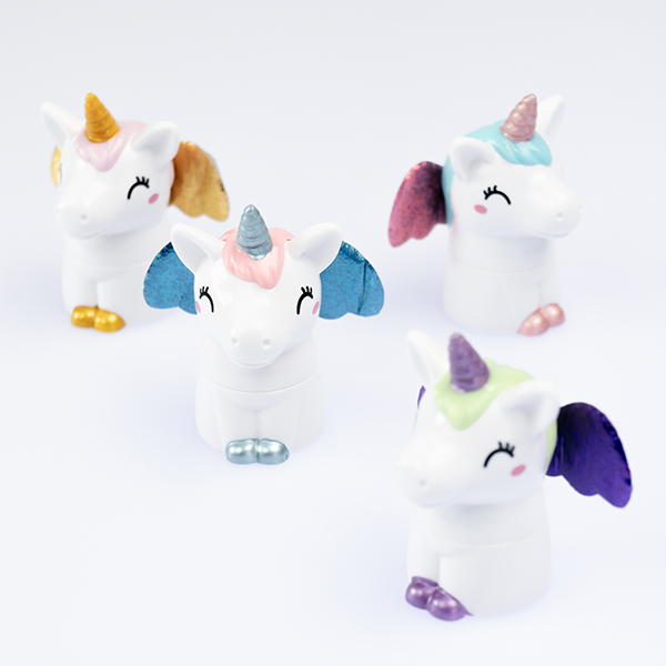 Kleine Einhorn-Lippenstifte, die du immer bei dir tragen kannst! Erhältlich in 4 verschiedenen Farben und Geschmacksrichtungen.