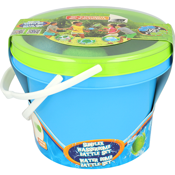 Das umweltfreundliche WATERBOMB BATTLE SET kann beliebig wiederverwendet werden. Einfach nochmal ins Wasser tauchen und die Wasserschlacht kann weitergehen. 5 blaue und 5 grüne Wasserbomben à 7cm und 2 praktische Aufbewahrungseimer.