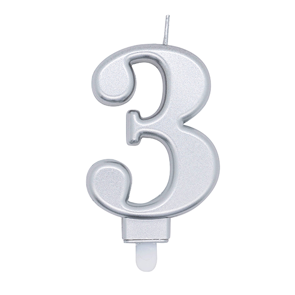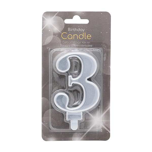 Zahlenkerze 3 silber. Tolle Dekoration für den Geburtstagskuchen.