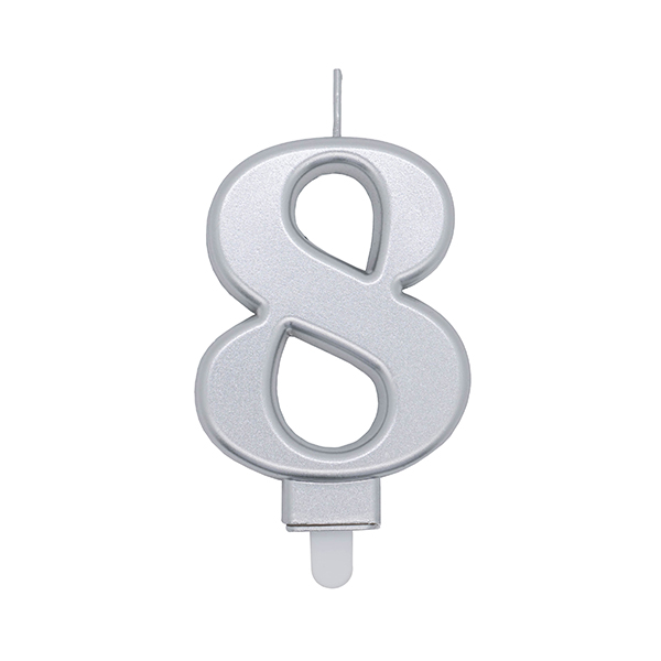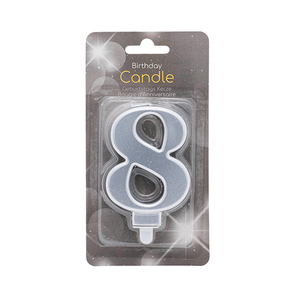 Zahlenkerze 8 silber. Tolle Dekoration für den Geburtstagskuchen.