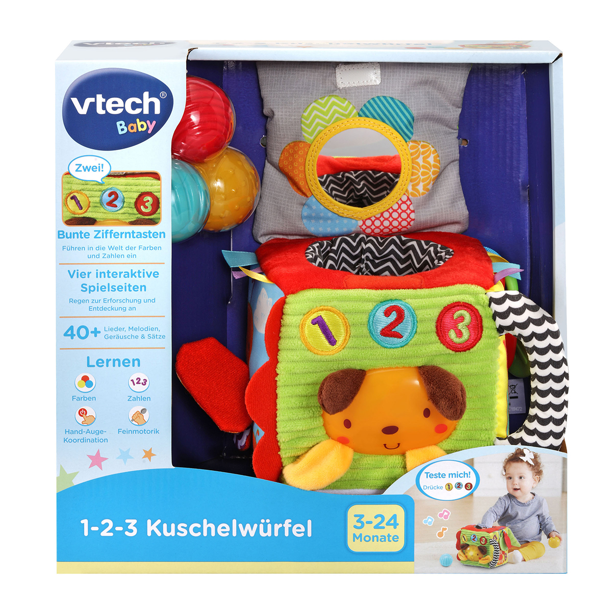 6 Seiten voller Spiel, Spass und Abenteuer! Würfel mit 6 Seiten voller unterschiedlicher Gegenstände, zum Entdecken, Lernen und Spielen. Verschiedene Oberflächen regen den Tastsinn an, aufleuchtender Welpe singt, spricht und spielt tolle Melodien. Reagiert auf Bewegungen mit lustigen Geräuschen. 3 Weiche Bälle, zum Einwerfen in den Würfel. 3 gesungene Lieder, 15 Kindermelodien. Lautstärkeregler, kindersicheres Batteriefach und Abschaltautomatik.