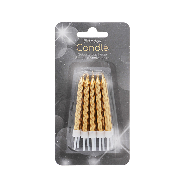 10 bougies anniversaire avec bougeoirs or, pour attacher sur le gâteau d'anniversaire.