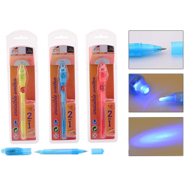 2 en 1 crayon. Avec ce crayon, tu peux écrire des messages invisibles.