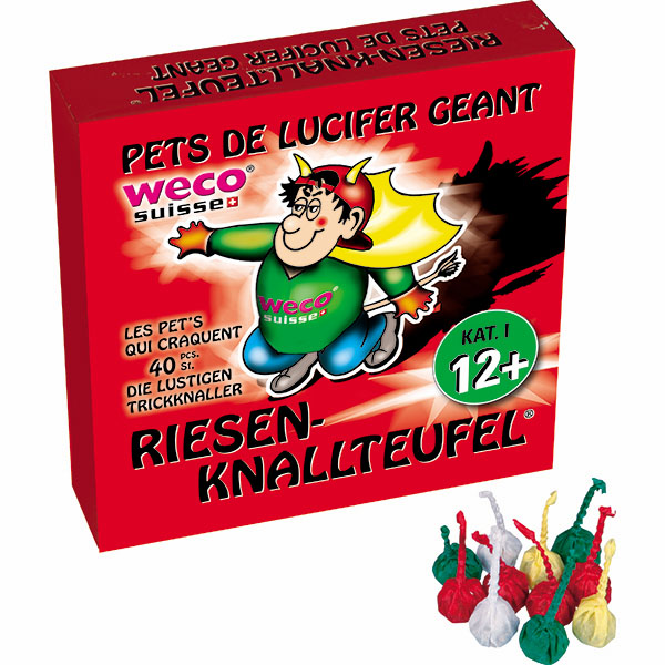Petards diaboliques geants, eclatent quand on les lance par terre. 40 pcs par boîte.