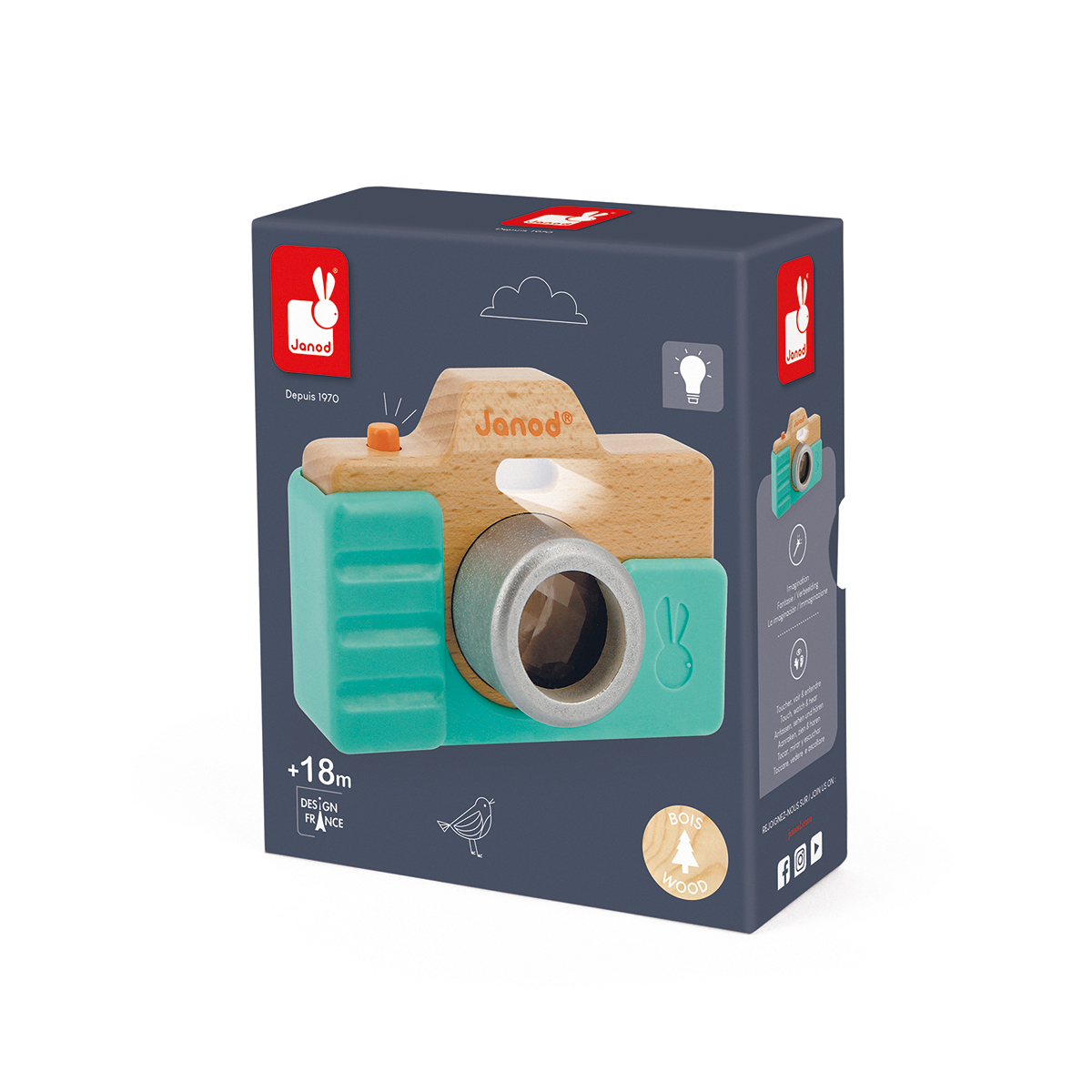 1, 2, 3 … souriez ! Un appareil photo ludique pour faire comme les grands. Il suffit d'appuyer sur le bouton pour que le son et le flash se déclenchent. À travers le viseur kaléidoscope, l'enfant découvrira des formes et des couleurs extraordinaires. Idéal pour favoriser l'imagination, le produit est fourni avec une coque amovible en silicone pour favoriser la préhension du jouet. Fonctionne avec 3 piles (LR44) fournies. Jouet d'imitation pour les enfants à partir de 18 mois.