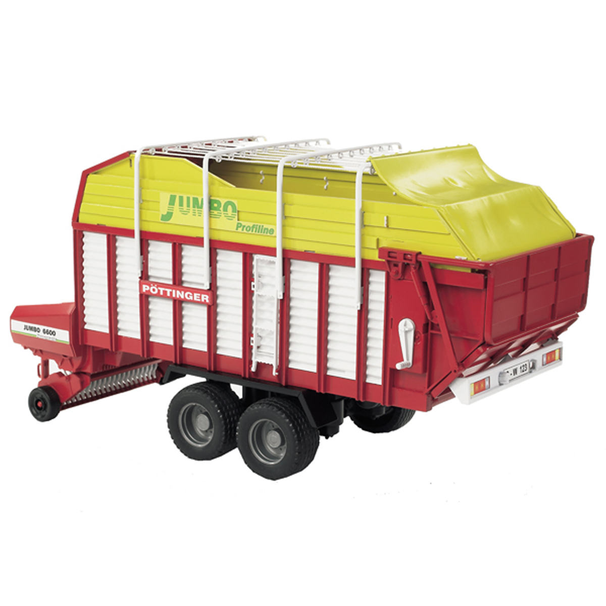Le rouleau récepteur de du véhicule de chargement Pöttinger bouge pendant la marche. La trappe latérale peut être ouverte, l'échelle est rabattable, l'étrier et les cordes du toit peuvent être retirés. Les rouleaux doseurs sont actionnable à l'aide de la manivelle manuelle. Le panneau arrière peut également être ouvert. Un stabilisateur offre un appui sûr et les pneus profilés complètent le tableau. Le véhicule de chargement Pöttinger convient à tous les tracteurs de la série Profi.