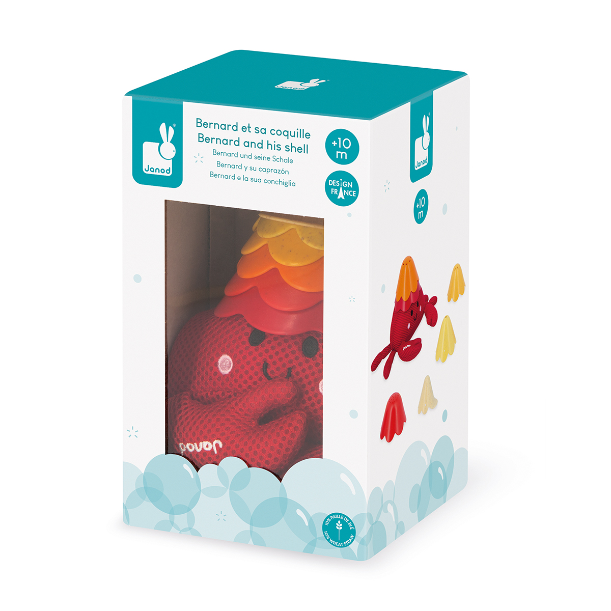 Amusez-vous avec notre barboteur Bernard, et laissez votre enfant s’occuper seul de sa toilette ! Parfaitement adapté aux mains des plus petits, se laver va devenir un vrai plaisir. Reconstruisez sa coquille en empilant les 6 coupelles, chacune ayant un perçage différent. Une fois remplies, soulevez-les pour voir l’eau s’écouler. Pratique, la dernière est munie d’un petit manche pour une meilleure préhension et pouvoir arroser Bernard ! La coquille de Bernard est réalisée à partir de paille de blé. Idéal pour développer la motricité fine. Jouet pour le bain pour les enfants à partir de 10 mois.