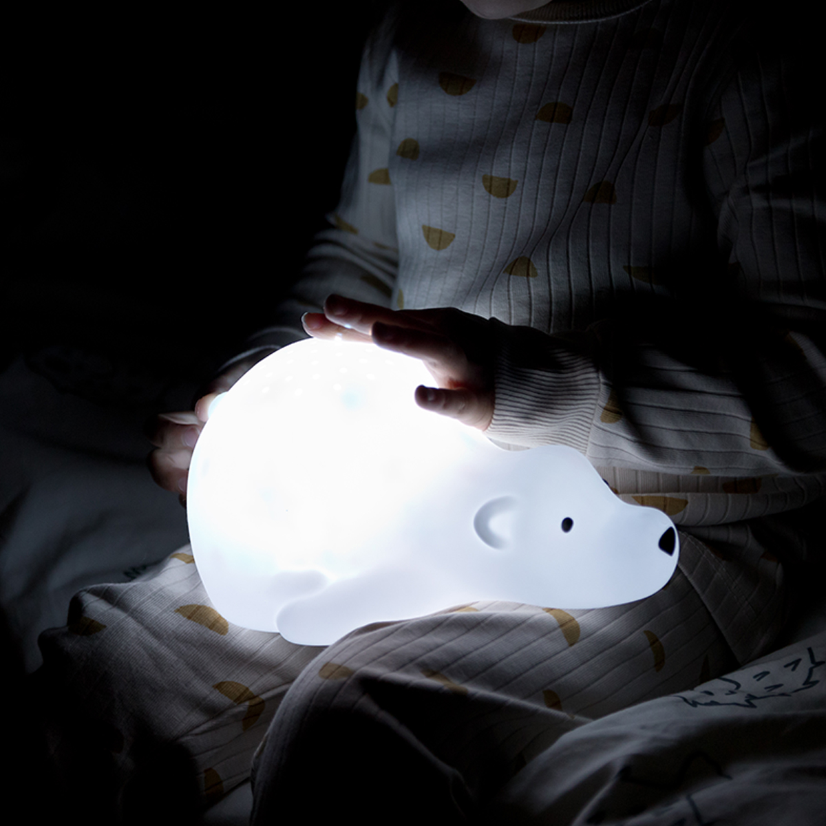 Projecteur Bjorn transformera votre chambre d'enfants en un monde magique. Votre tout-petit s'endormira paisiblement en regardant Bjorn et la projection de jolis points au plafond de la pièce. Bjorn est également une veilleuse avec des étoiles allover. Bjorn a 6 options d'éclairage différentes: blanc, bleu, jaune, multicolore, se fanant entre les couleurs et se fanant toutes les couleurs. Vous pouvez également choisir entre 3 options de luminosité différentes. Bjorn est rechargeable et dispose d'une fonction de minuterie de 30 minutes. Regardez la vidéo de production pour votre commentaire Bjorn fonctionne exactement et à quel point il est mignon dans votre chambre d'enfant!