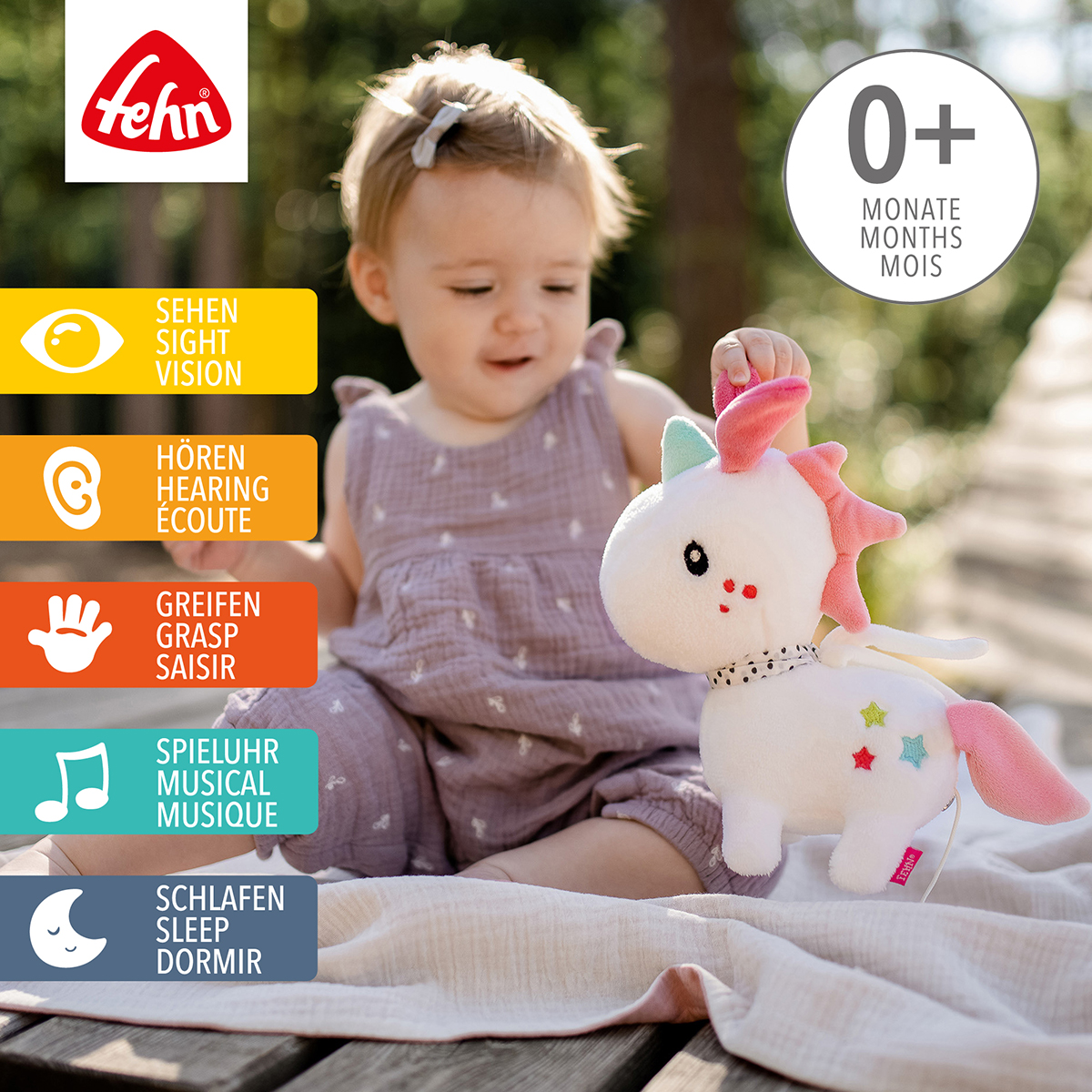 La boîte à musique licorne est très moelleuse et est idéale pour ressentir, caresser et aimer. Mettez la boîte à musique pour entendre une chanson de sommeil.