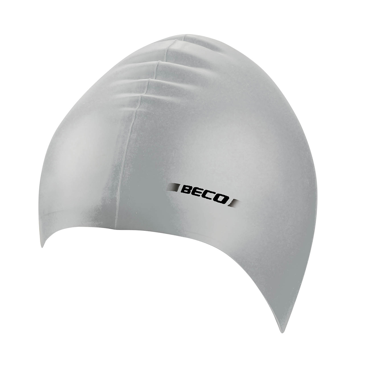 Bonnet de bain en silicone, argent, taille universelle. Le bonnet est très élastique et ajuste parfait sur la tête. La matière silicone étanche et robuste ne collée pas et offre un grand confort. Le bonnet unicolore protège les oreilles et les cheveux en plongeant.