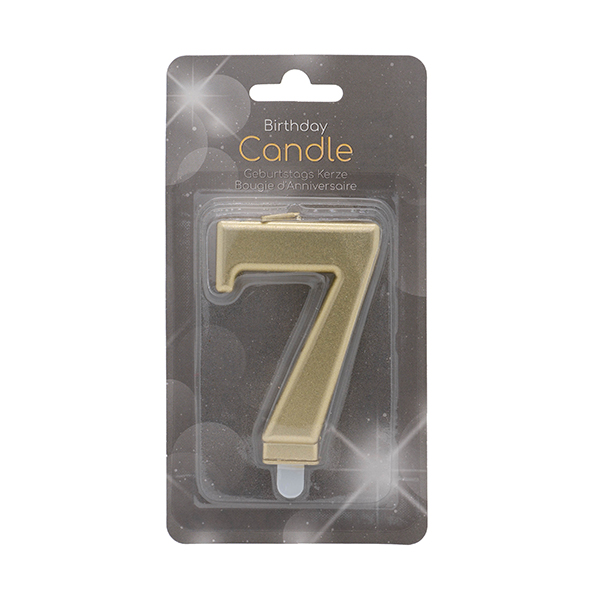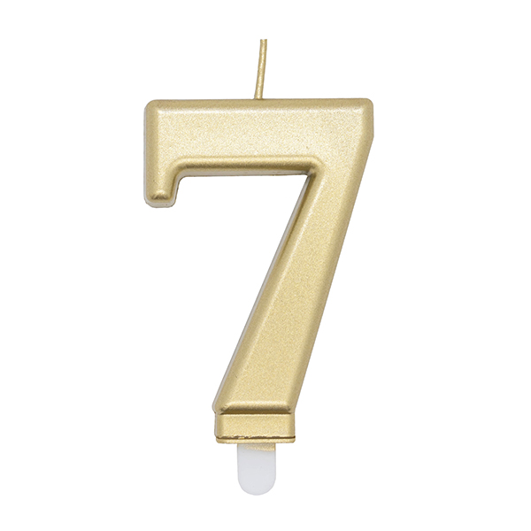 Bougie chiffre 7 doré. Décoration chouette pour le gâteau d'anniversaire.