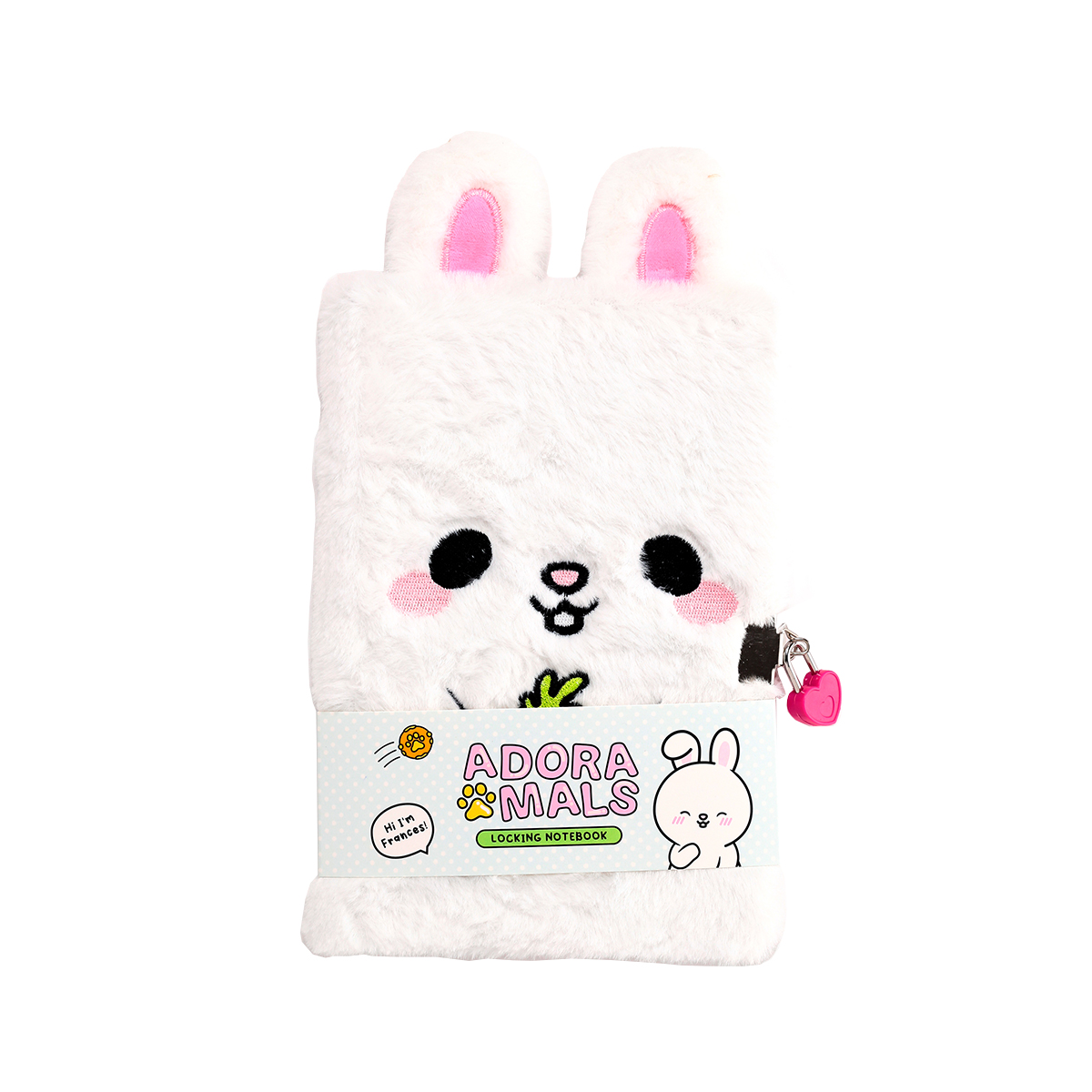 Adoramals Frances le lièvrec carnet en peluche avec cadenas et clé