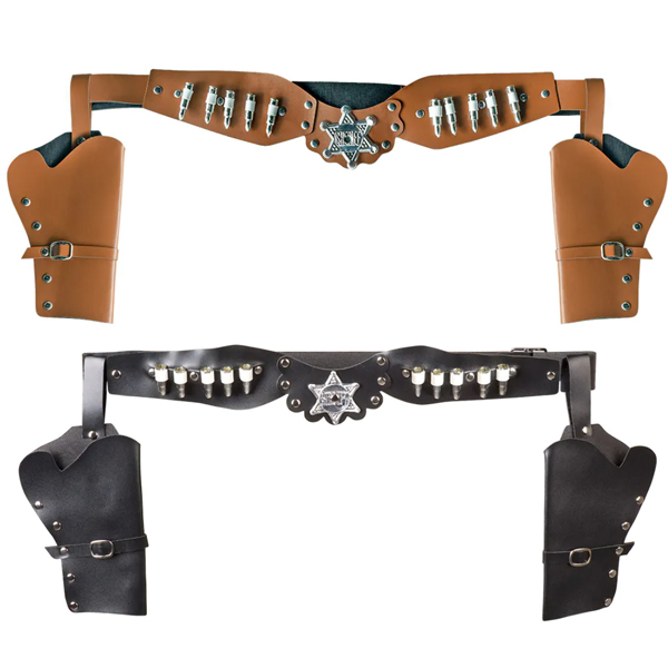 Holsters avec 2 poches shérif pour les adultes, 2 couleurs différentes noir et brun, longueur env. 130cm
