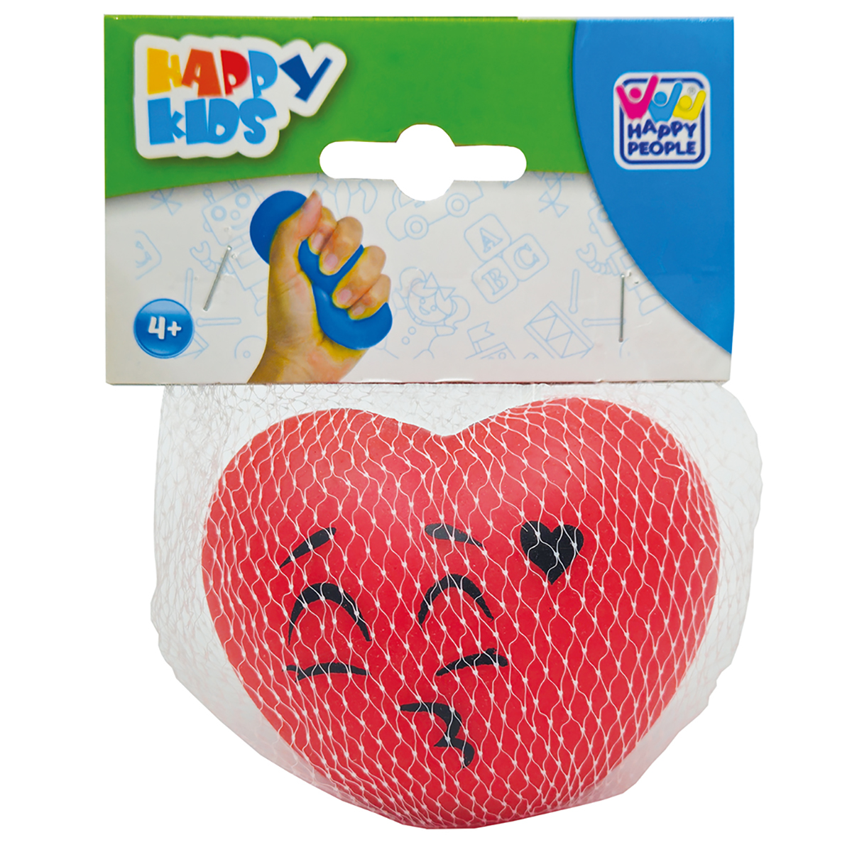 Coeur anti-stress 9cm 4-fois assortis:1x rouge Love, 1x rouge avec visager, 1x coeur rose-brillant, 1x coeur rose-brillant Love.