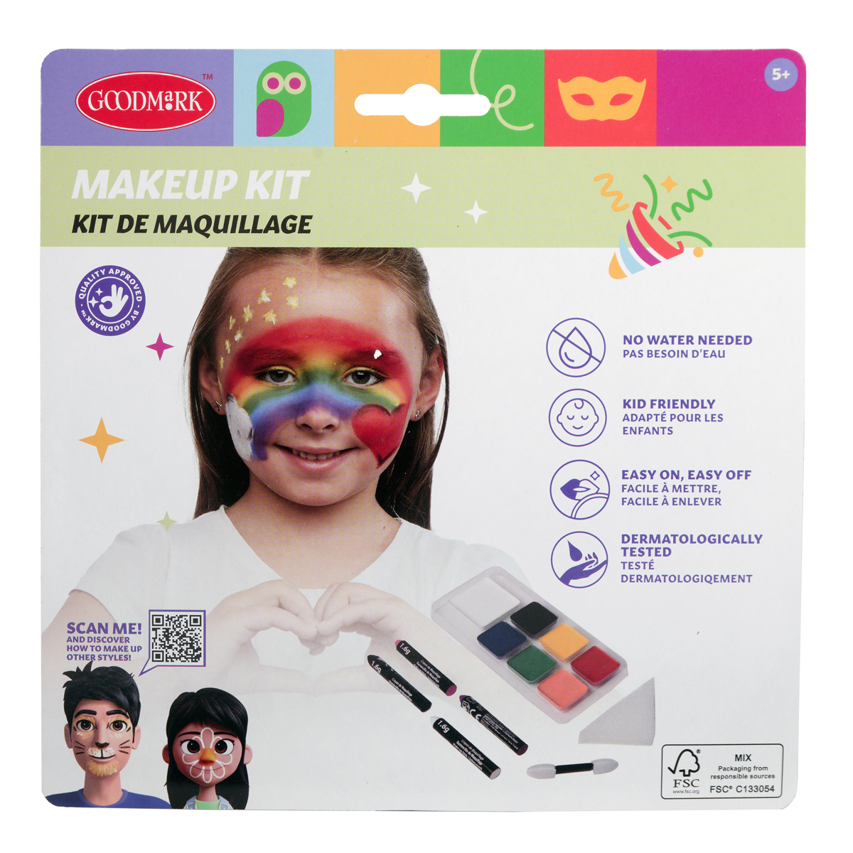 Complétez votre look de FÊTE ou de CARNAVAL avec ce coffret de maquillage BASIC GREASE, contenant tout le nécessaire pour sublimer votre tenue ! Ce coffret comprend 7 couleurs de peinture grasse (3 g de blanc et 1 g de noir, jaune, rouge, bleu, vert), 4 crayons de maquillage gras (blanc, noir, violet, rose), 1 éponge et 1 applicateur. Facile à appliquer et à retirer, ce maquillage est idéal pour les enfants et indispensable pour votre maquillage de fête !