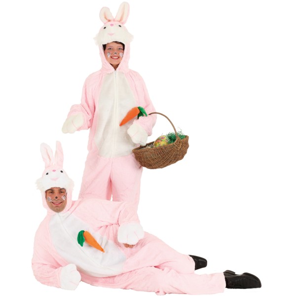 Costume de lapin en peluche rose avec capuche, fermeture éclair en taille unique jusqu'à la taille 40/42