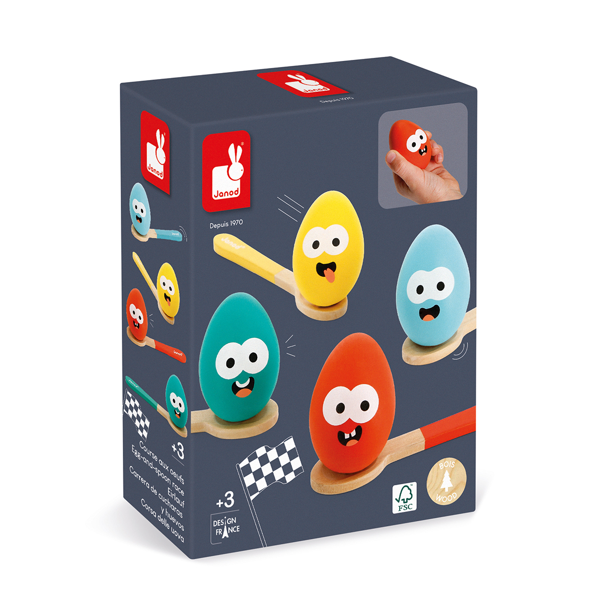 Attention les y'œufs ! C'est parti pour une course effrénée, la casse est interdite ! Tout le monde se place sur la ligne de départ, cuillère en main, 3…2…1… c’est parti ! Ce set est composé de 4 cuillères et 4 œufs colorés en bois. Idéal pour les anniversaires ou les après-midis entre amis. Jeu en bois FSC et peinture à l'eau. Pour les enfants de plus de 3 ans. Nous avons imaginé cette gamme d’anniversaire comme une explosion de rire et de bonne humeur. Animaux rigolos et jolies couleurs sont réunis pour être la recette parfaite d’une belle fête entre amis.