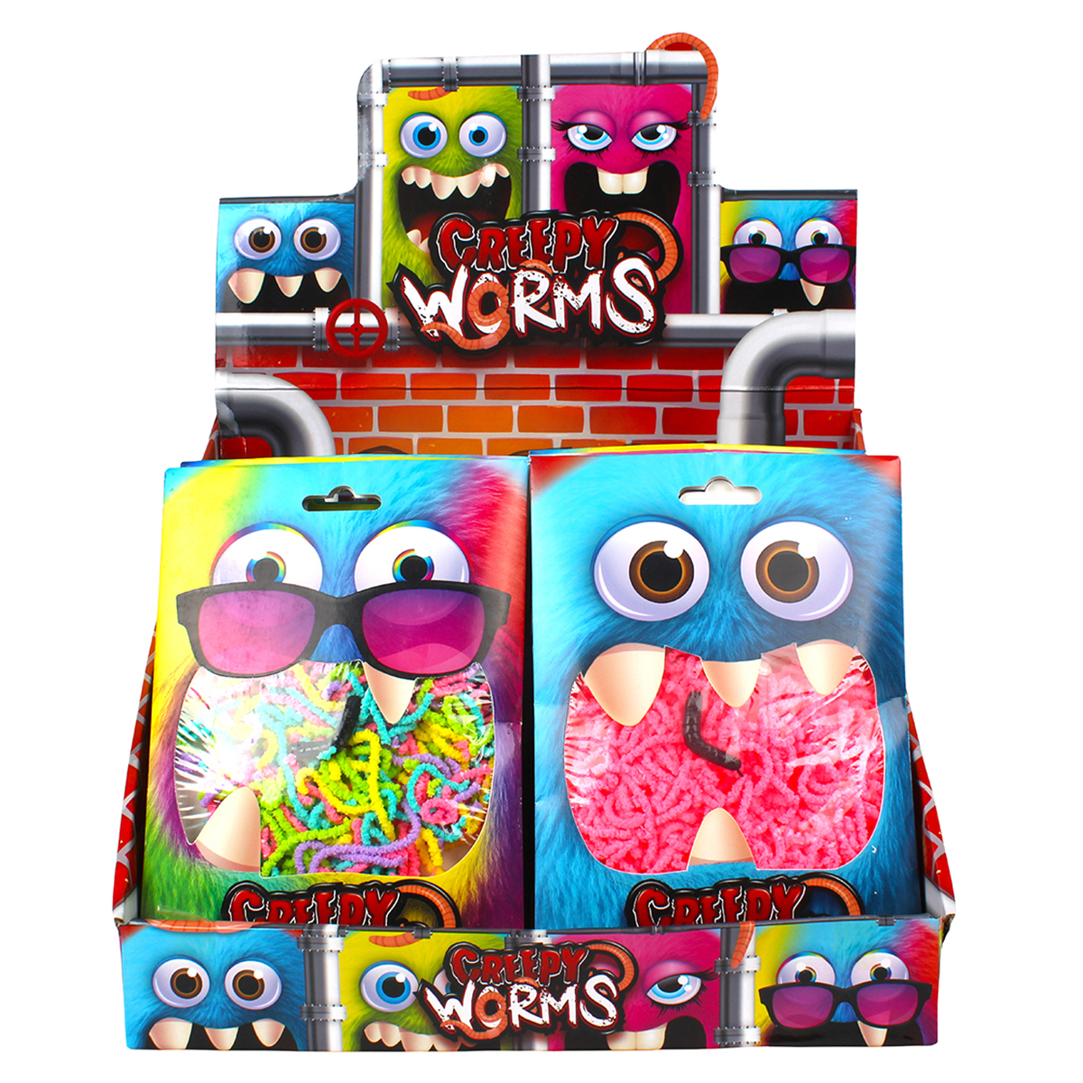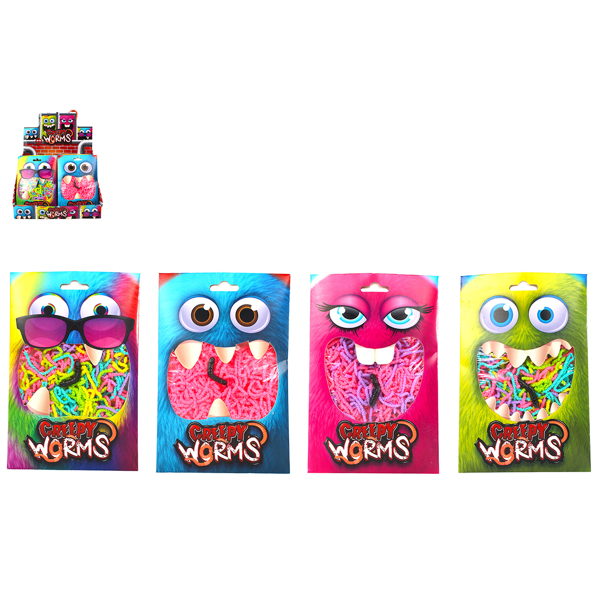 Creepy worms 50g, 4-fois assortis en display.