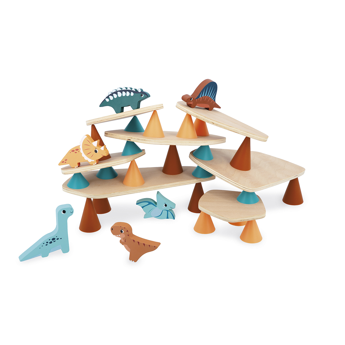 Piks, produit phare de la marque OPPI a été conçu avec des spécialistes de l'enfance pour répondre à des objectifs éducatifs précis : développer l'attention et la concentration, la motricité fine et les compétences visuo-spatiales. Grâce à la manipulation des cônes en silicone et des planches en bois, les enfants exercent leur coordination œil-main, leur précision gestuelle et leur dextérité. En ajoutant ses dinosaures en bois, Janod apporte un univers singulier où les enfants composent, inventent, et développent leur imagination. Ce jouet est composé de 21 cônes en silicone de 3 tailles et couleurs différentes, de 6 chunkys dinosaures et de 7 planches en bois. Il encourage les enfants à anticiper les équilibres, à visualiser les formes et à organiser l'espace de manière logique. Jouet d'adresse pour les enfants à partir de 3 ans.