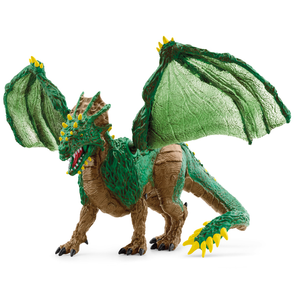 Dans le monde de la jungle, ce dragon est roi! Personne n’ose contester sa suprématie. Pourquoi? Il suffit de jeter un coup d’œil à ses mâchoires terrifiantes! D’un air menaçant, il dévoile ses dents acérées. Attention à ne pas trop s’approcher: il pourrait t’assommer d’un coup de queue! Celle-ci est d’ailleurs surmontée d’énormes épines. Mieux vaut rester à distance lorsqu’il déploie ses ailes gigantesques et s’élance dans les airs. Depuis les airs, il peut surveiller le royaume d’ELDRADOR® en toute tranquillité.