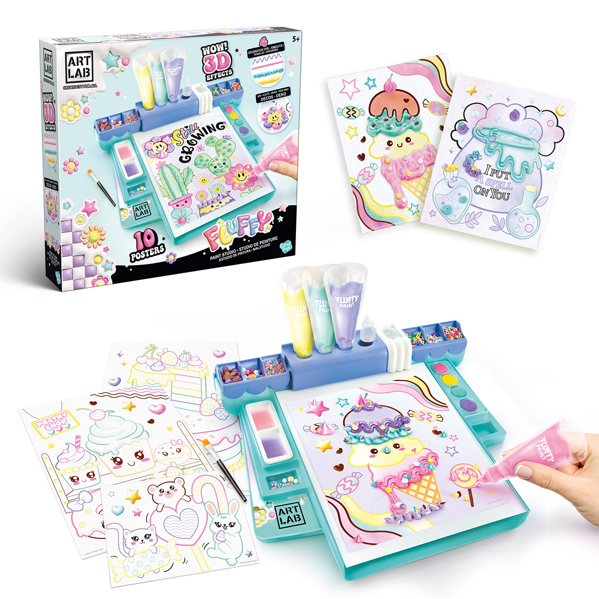 Créez des peintures 3D étonnantes avec Fluffy Paint Studio ! Choisissez votre dentelle et votre couleur pour créer des effets de couleur croissants sur les posters. Ajoutez des décorations pour rendre le tout encore plus amusant ! Tout ce dont vous avez besoin pour créer 20 posters est inclus.