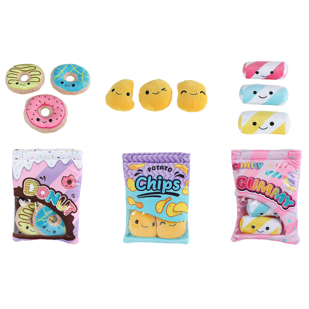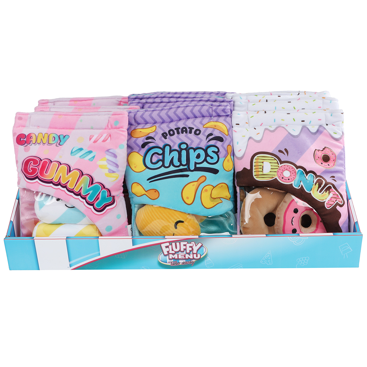 Peluche Fluffy Snack 3-fois assortis 21cm en display.